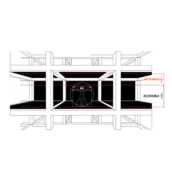 بسیاری از پروژه هایی که این روز ها عموم دفاتر معماری در ایران با آن روبرو می شوند روایت یک داستان تکراریست، مشتری با یک پلان معماری و سازه محاسبه شده و تاییدیه های نظام و شهرداری به دفتر معماری مراجعه می کند که گاهی معمار با رایزنی با سازنده موفق به تغییر وضعیت موجود می شود و گاهی هم (نه)، سازنده با توجه به شرایطی تمایل به هیچ گونه دخل و تصرف و یا تغییر در متراژ و ماهیت سازه را نخواهد داشت و معمار به این محکوم خواهد شد که معماری را به طراحی یک پوسته در نما و طراحی داخلی با کمترین تغییرات در پلان تقلیل داده، این پروژه به دسته دوم تعلق دارد. ما مدتی به این موضوع فکر می کردیم که اگر نخواهیم از انجام این جنس پروژه ها که به دسته دوم تعلق دارد منصرف شویم چه باید کرد ! در واقع اگر ما گرید سازه ایی محاط شده در عموم بناهای موجود را به عنوان یک واقعیت موجود در نظر بگیریم و از طرفی پلان های متعارف و مرسوم در فرآیند ساخت و ساز را هم یک واقعیت مطلوب و اقتصادی و نه چندان قابل مذاکره از نگاه مشتری در نظر بگیریم و آن را به رسمیت بشناسیم ، آیا دیگر فرصتی برای گریز از این شرایط محکوم و تایپولوژی تکرار شونده موجود باقی می ماند که بتوان از آن روزن به عنوان فرصتی برای اندکی نفوذ و آزاد شدن ظرفیتی به نفع پروژه بهره برد تا به سرنوشت محتوم عموم پروژه هاي مشابه دچار نشود ! پرسش : در نهايت این سوال مطرح می شود که در این ساختار موجود چه فرصت هایی را می توان آزاد كرد كه احتمالا تاکنون از دسترس خارج مانده ؟ و يا كمتر به آن توجه شده باشد ؟ در پاسخ : باید گفت، وقتی که یک سری از امکانات در مقابل چشمانمان حاضر و مسلط هستند این احتمال وجود دارد که همزمان امکاناتی از دسترس دید و مشاهده ما غائب و خارج مانده باشند ! چند سال پیش در یک پروژه تجربی روی این موضوع متمرکز بودیم که اگر در زمانی که روی فرصت های موجود در پلان یک فضای سکونتی متعارف متمرکز هستیم آیا احتمال دارد که امکاناتی از دسترس دید و مشاهده ما غائب و خارج مانده باشد ! يكی از نكاتي كه در مطالعه اين موضوع براي ما جالب بود اين بود که اگر همزمان به “برش” آن پروژه نظر کنیم متوجه خواهیم شد که معمولا تمام ارتفاع موجود در سكشن یک ساختمان برای تفکیک عملکردی و بصری فضاهای موجود در پلان ، مورد نیاز نخواهد بود و می توان ساختار این سلول های زیستی را به یک حوزه “یک سوم” و “دو سوم” تقسیم کنیم که در واقع حوزه“دو سوم” ابتدایی، مسئولیت تفکیک فیزیکی و بصری میان عملکرد های فضایی را بر عهده دارد در حالی که همزمان حوزه “یک سوم” فوقانی به دلیل در دسترس نبودن دائمی توسط کاربر (ونیاز های فیزیولوژیکی اش) قطعا مسئولیت سنگینی همانند حوزه “دو سوم” بر عهده نخواهد داشت، بخش “دو سوم” محدوده ایست که کاربر در آن زیست دارد و نیاز هایش را در آن برطرف می کند ولی بخش “یک سوم” محدوده ایست که جنس نیاز کاربر در آن متفاوت است، دائما در دسترس نیست و قرار نیست تفکیک دید و عملکرد ها را همچون بخش “دو سوم” برعهده داشته باشد . در نتیجه به این موضوع علاقه مند شدیم که فکر کنیم چگونه این ایده یعنی تمرکز برحوزه “یک سوم” پروژه میتواند در تایپولوژی گرید سازه ایی آپارتمانهای متعارف موجود امکان تولید ظرفیت های جدید را برای پروژه افزایش دهد.