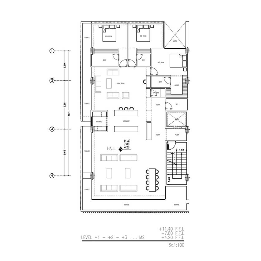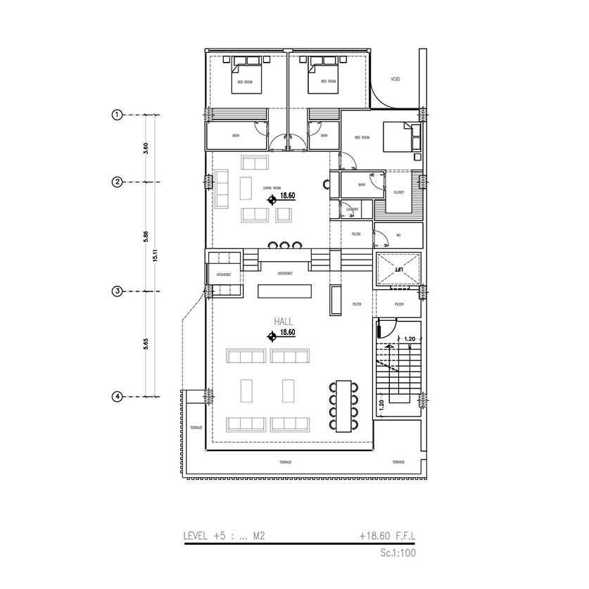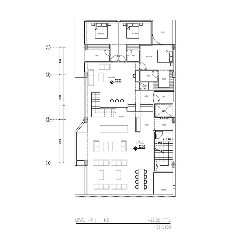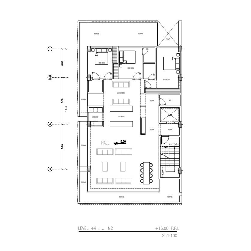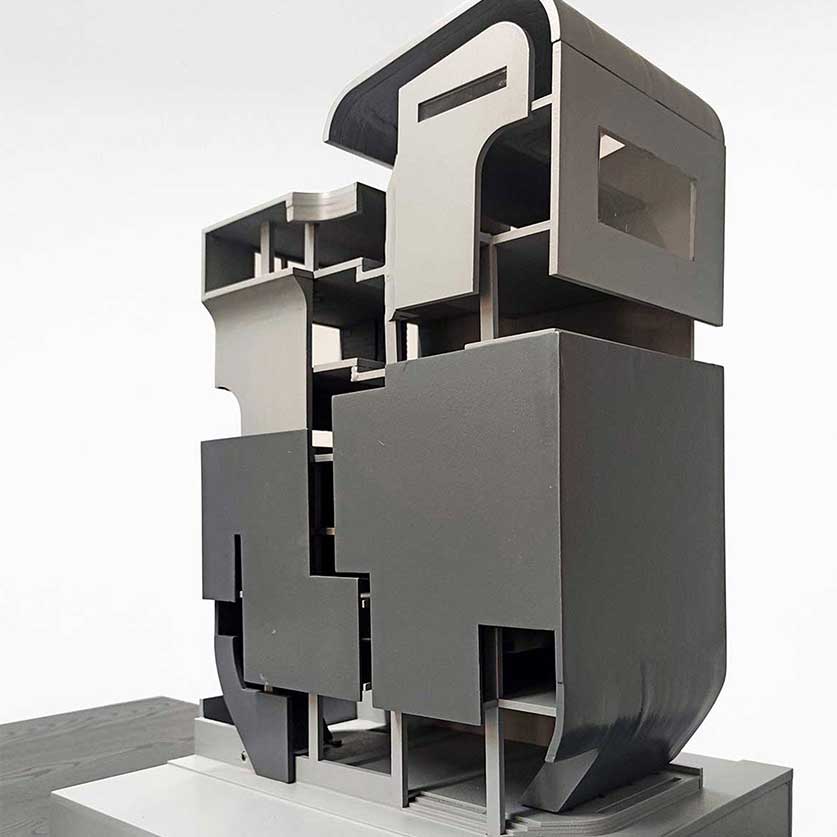The residential building "four plus two" consists of a double morphological language that separation of these two areas is formed by the urban skyline in the neighborhoods In the lower part (four lower floors), a two-shell facade with a brick texture (opening) is designed introvertedly. which, on the one hand, makes it possible to enjoy a glass panoramic view behind it, and on the other hand, suggests a two-shell climate structure. And in the upper part of it, two units with an extroverted structure in the form of duplex and triplex with the benefit of the city view (according to the customer's needs) are planned .